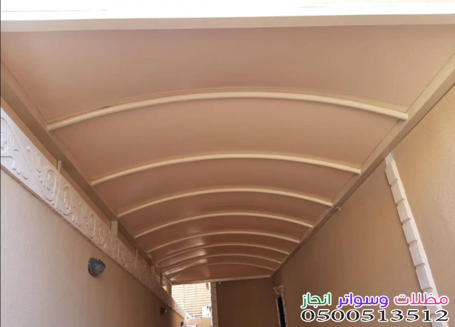 - مظلات السيارات (كراجات السيارات): هي الأكثر شيوعًا، وتُصنع غالبًا من القماش المقاوم للحرارة والأشعة فوق البنفسجية، أو من مادة البولي إيثيلين عالية الكثافة (HDPE). تأتي بأشكال مختلفة مثل الشكل الهرمي، المخروطي، أو المقوس.