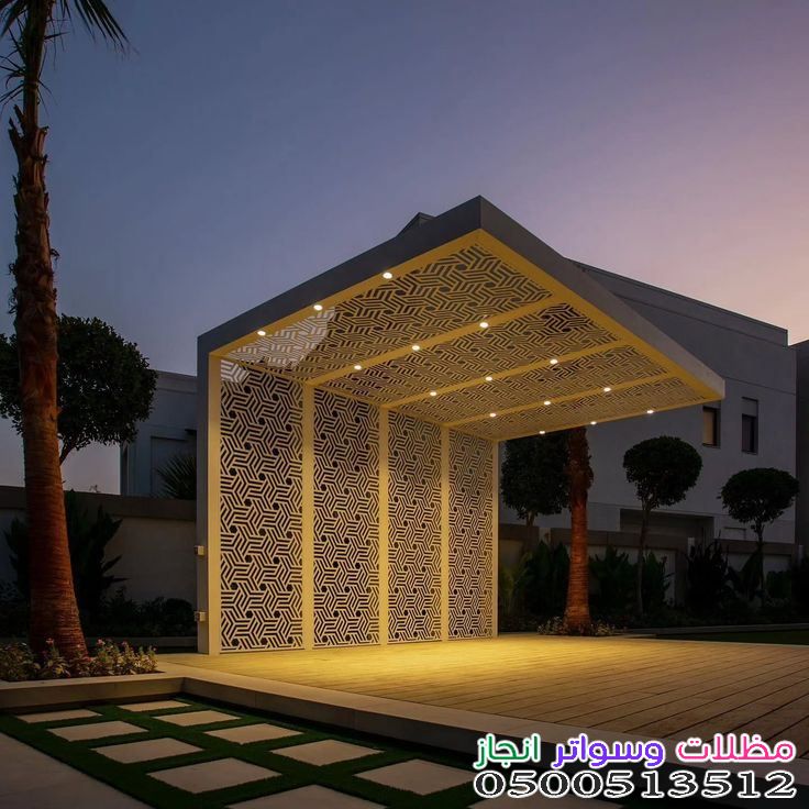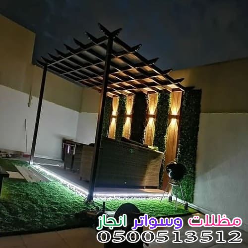 الإضاءة المدمجة: إضافة وحدات إضاءة (LED) أو سبوتات داخل هيكل البرجولة تزيد التكلفة.