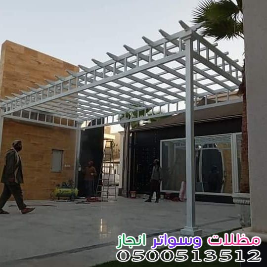 تغطية اللكسان (البولي كربونات): مادة شفافة أو شبه شفافة توفر حماية ممتازة من المطر والأشعة فوق البنفسجية. يرفع هذا الخيار سعر المتر المربع وقد يضيف ما يقارب 50 - 100 ريال على سعر المتر المربع للبرجولة الحديدية.