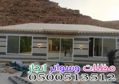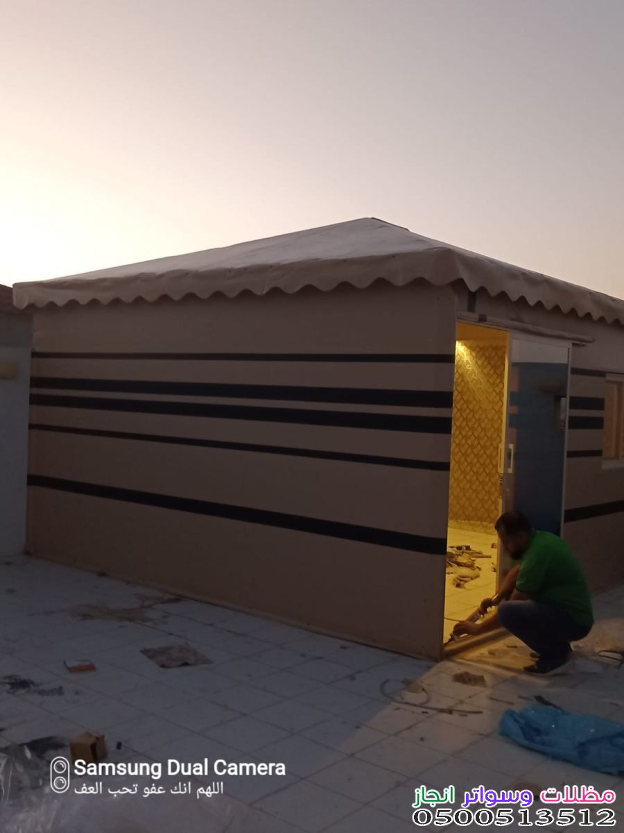- التدفئة الخارجية: إضافة موقد تدفئة خارجي صغيرواقرب محل حداده مظلات وسواتر في المنطقة الرياض المحيطة ببيت الشعر لزيادة جاذبية المكان في الأمسيات الباردة.