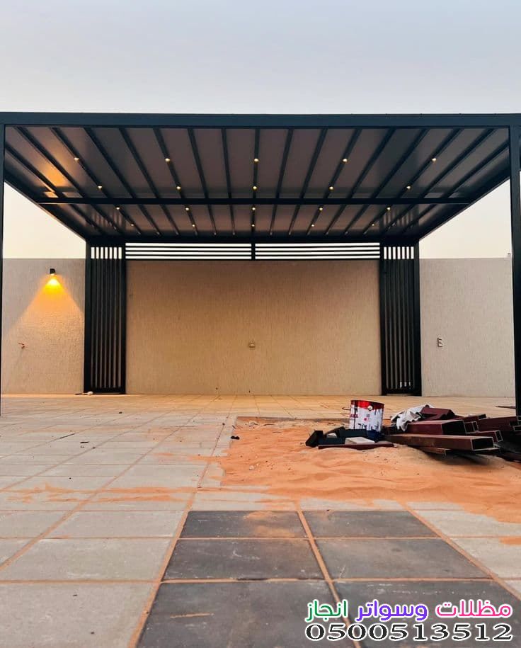 نصيحة الخبراء: عند تركيب مظلات السيارات، تأكد من اختيار تصميم "الكابولي" ومظلات جلسات خارجية بالرياض إذا كنت تملك مساحة محدودة،لأنه يعتمد على أعمدة من جهة واحدة فقط، مما يسهل حركة السيارة.