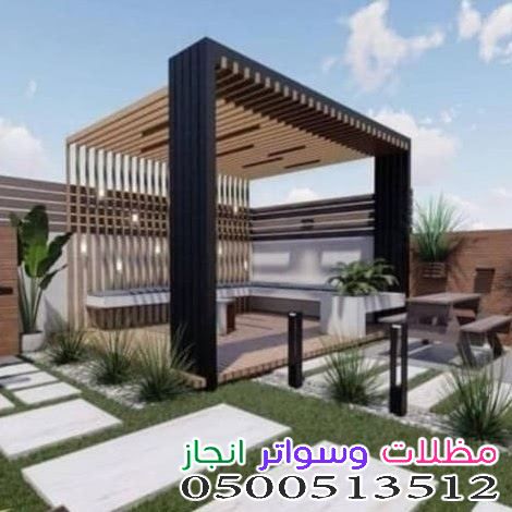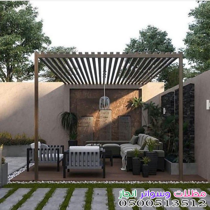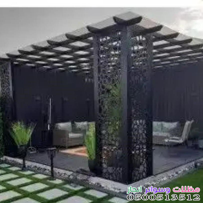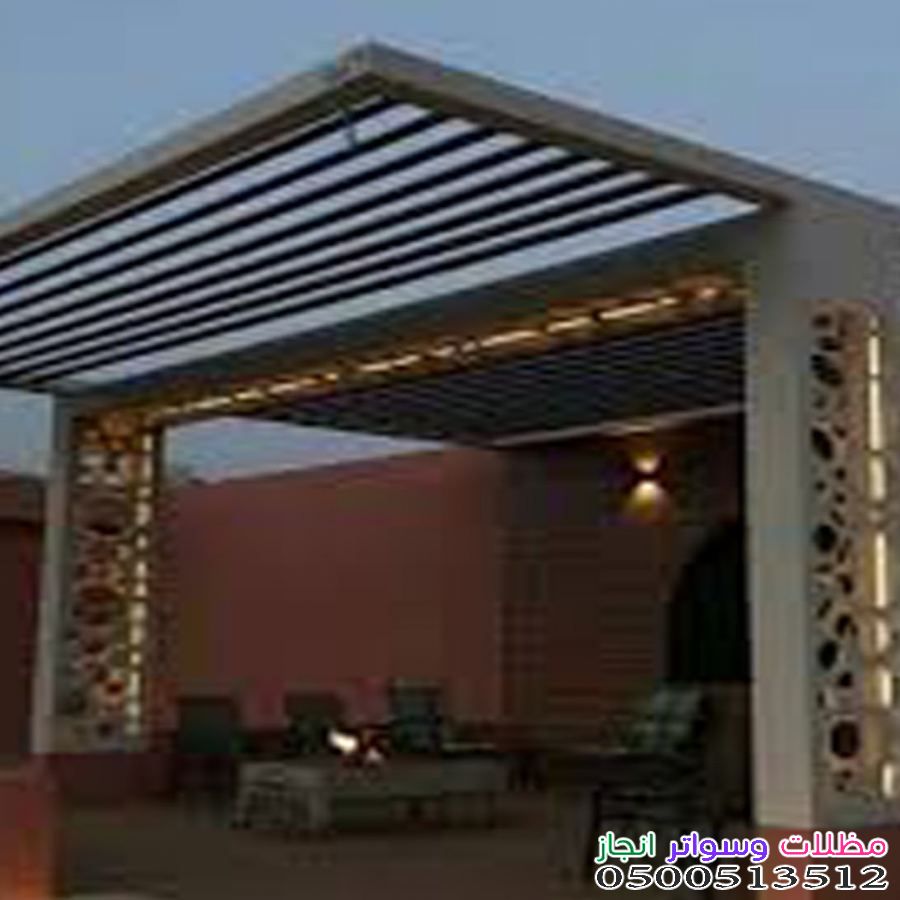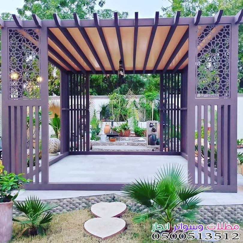 - المظلات: سواء كانت خشبية، حديدية، أو قماشية (PVC)، فهي ضرورية للحماية من أشعة الشمس المباشرة.