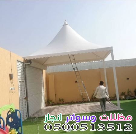 - مظلات الـ PVC (البولي فينيل كلوريد): هي الأكثر طلباً في السعودية، وتتميز بوزنها الخفيف، وقدرتها العالية على عزل الحرارة، ومقاومتها للحرائق (لا تساعد على الاشتعال).
