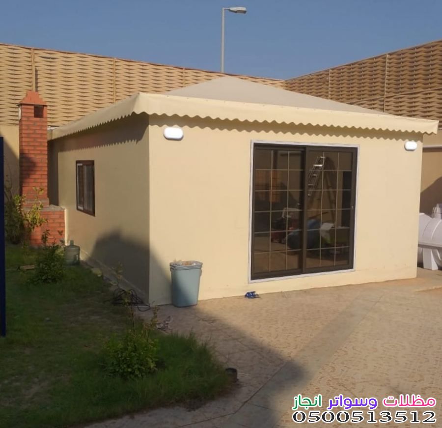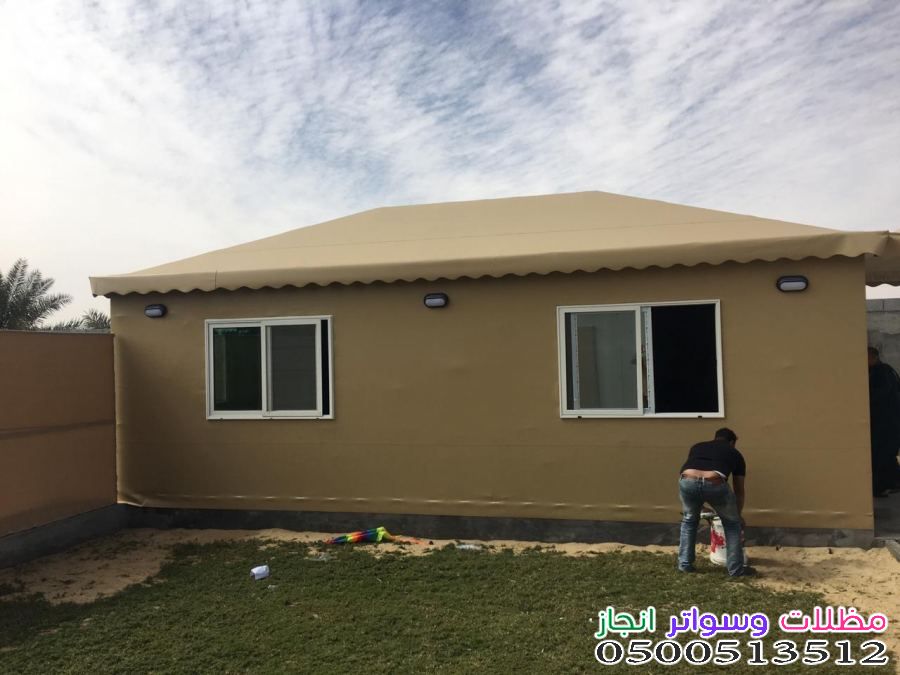 - نوع القماش: يفضل استخدام الـ PVC الألماني أو الكوري لوزن (1100 جرام فأكثر) لقدرته العالية على تحمل أشعة الشمس فوق البنفسجية.